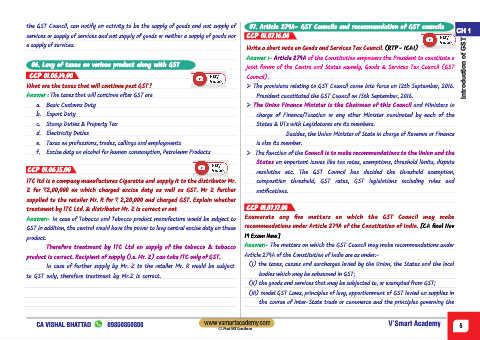 Therefore treatment by ITC Ltd on supply of the tobacco & tobacco Answer:- The matters on which the GST Council may make recommendations under