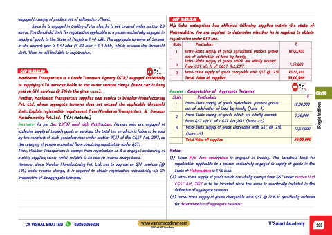 supply of goods in the State of Punjab is ` 40 lakh. The aggregate turnover of Sameer registration under GST law.