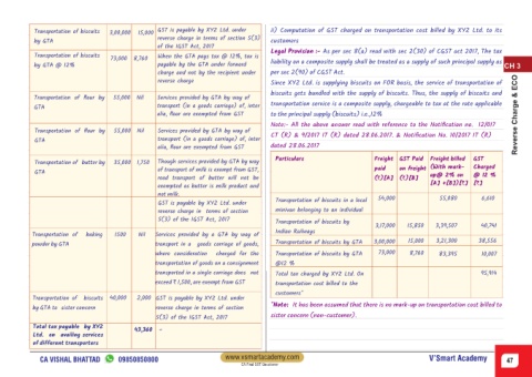 Transportation of biscuits 3,00,000 15,000 GST is payable by XYZ Ltd. under ii) Computation of GST charged on transportation cost billed by XYZ Ltd. to its