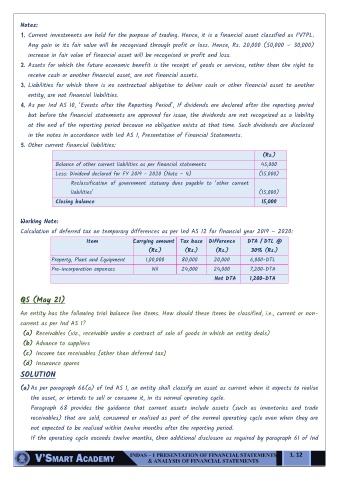 1. Current investments are held for the purpose of trading. Hence, it is a financial asset classified as FVTPL.