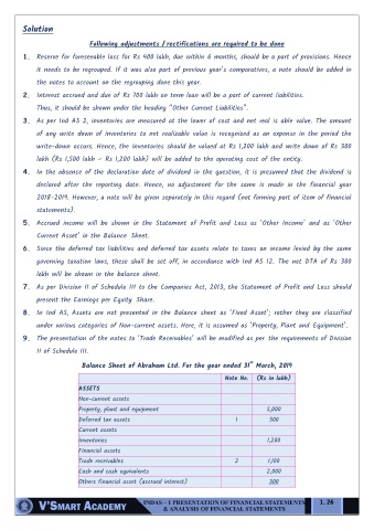 Balance Sheet of Abraham Ltd. For the year ended 31 March, 2019