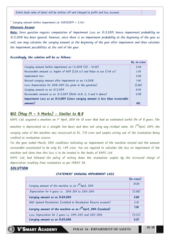 Impairment Loss as on 31.3.2019 (since carrying amount is less than recoverable