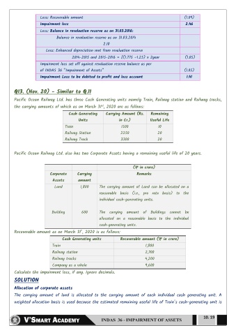Pacific Ocean Railway Ltd. has three Cash Generating units namely Train, Railway station and Railway tracks,