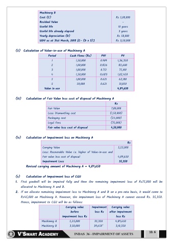 Rs45,000 on Machinery A. However, the impairment loss of Machinery A cannot exceed Rs. 35,350.