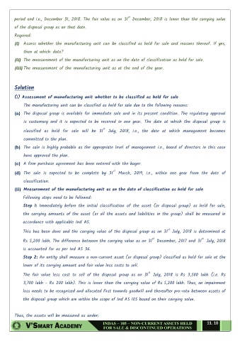 (ii)  The measurement of the manufacturing unit as on the date of classification as held for sale.