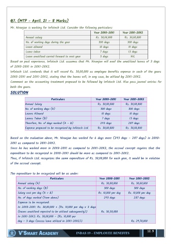 Based on past experience, Infotech Ltd. assumes that Mr. Niranjan will avail the unutilized leaves of 3 days