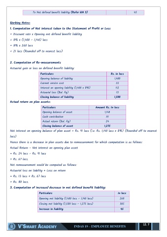 Net interest on opening balance of plan asset = Rs. 91 lacs (i.e. Rs. 1,140 lacs x 8%) (Rounded off to nearest