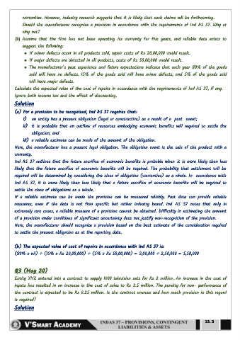 ●  If minor defects occur in all products sold, repair costs of Rs 20,00,000 would result.
