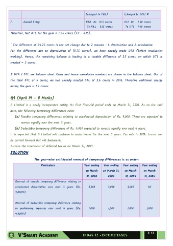 F. Journal Entry DTA Dr. 0.15 crores OCI Dr. 1.40 crores