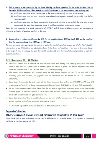 2.  Ted is granted a rent concession by the lessor whereby the lease payments for the period October 2020 to