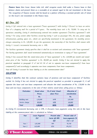 Entity X has assessed that the stand-alone price of ‘lease agreement’ is Rs. 1,20,000 per month and stand-