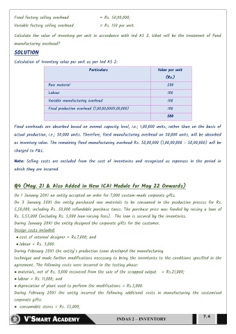 Calculate the value of inventory per unit in accordance with Ind AS 2. What will be the treatment of fixed