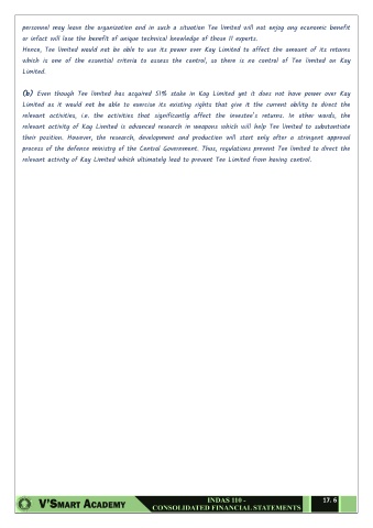 (b) Even though Tee limited has acquired 51% stake in Kay Limited yet it does not have power over Kay