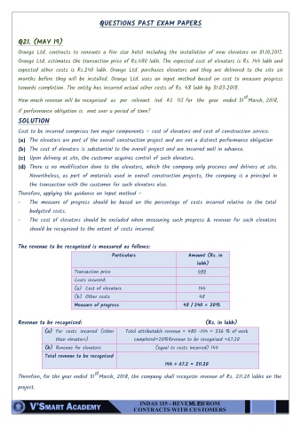 Orange Ltd. estimates the transaction price of Rs.480 lakh. The expected cost of elevators is Rs. 144 lakh and