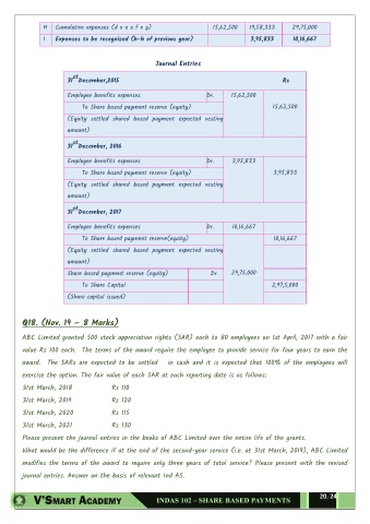 ABC Limited granted 500 stock appreciation rights (SAR) each to 80 employees on 1st April, 2017 with a fair