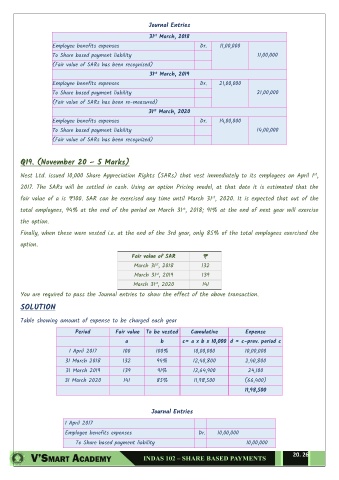 fair value of a is ₹100. SAR can be exercised any time until March 31 , 2020. It is expected that out of the
