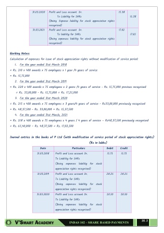 Journal entries in the books of P Ltd (with modification of service period of stock appreciation rights)