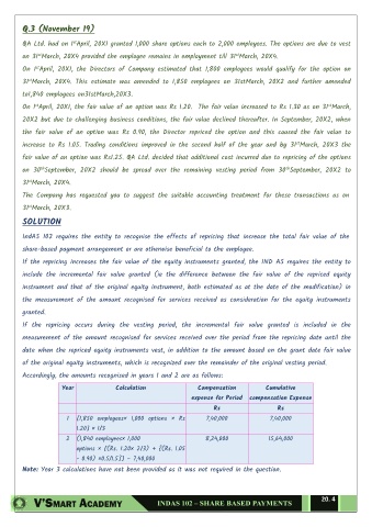fair value of an option was Rs1.25. QA Ltd. decided that additional cost incurred due to repricing of the options