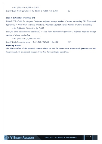 Overall Diluted Loss per share = Rs 34,080 / 1,21,600 = Rs 0.28 (ii)
