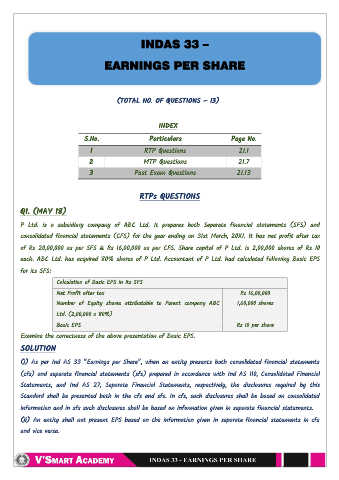 each. ABC Ltd. has acquired 80% shares of P Ltd. Accountant of P Ltd. had calculated following Basic EPS