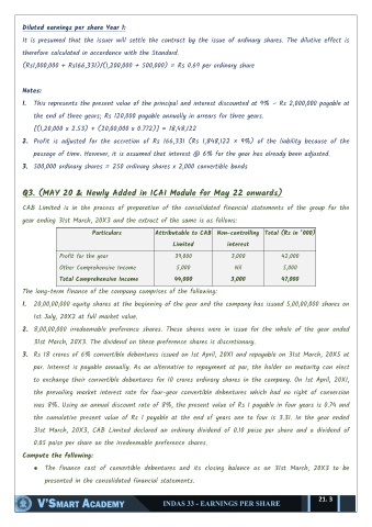 3. Rs 18 crores of 6% convertible debentures issued on 1st April, 20X1 and repayable on 31st March, 20X5 at