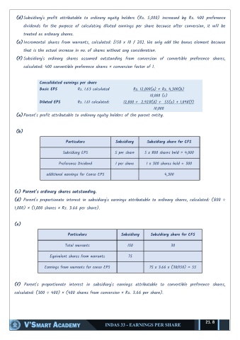 (d) Subsidiary's  profit  attributable  to  ordinary  equity  holders  (Rs.  5,000)  increased  by  Rs.  400  preference