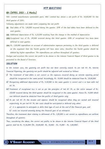 In the instant case, the quarterly net profit has not been correctly stated. As per Ind AS 34, Interim