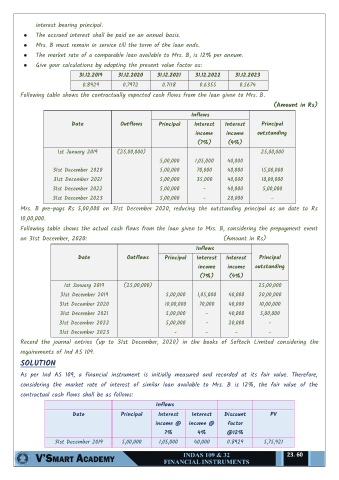 Following table shows the contractually expected cash flows from the loan given to Mrs. B.
