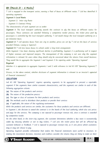 Segment 2: T Ltd operates buses from one city to another, prices are set by T Ltd on the basis of services