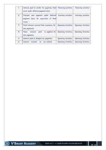 7. Interest paid to vendor for acquiring fixed Financing activities Financing activities