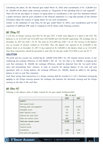 Further, in the statement of cash flows for the year ended March 31, 20X3, cash consideration paid for the