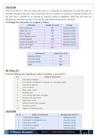 Sr. No. Nature of transaction Activity as per Ind AS 7
