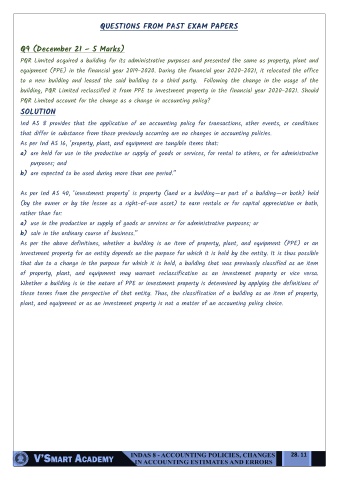 building, PQR Limited reclassified it from PPE to investment property in the financial year 2020-2021. Should