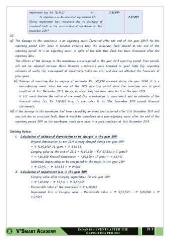 a) The damage to the warehouse is an adjusting event (occurred after the end of the year 2019) for the