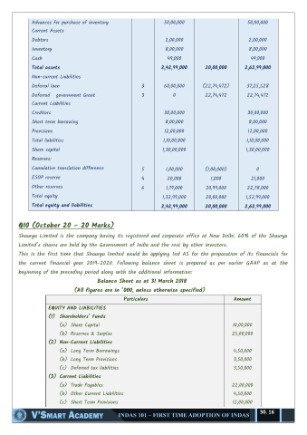 the current financial year 2019-2020. Following balance sheet is prepared as per earlier GAAP as at the