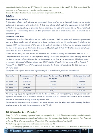 proportionate basis. Further, on 31 March 2024 when the loan has to be repaid, Rs. 2.50 crore should be