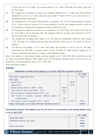 Computation of balance total equity as on 1st April, 2019 after transition to Ind AS