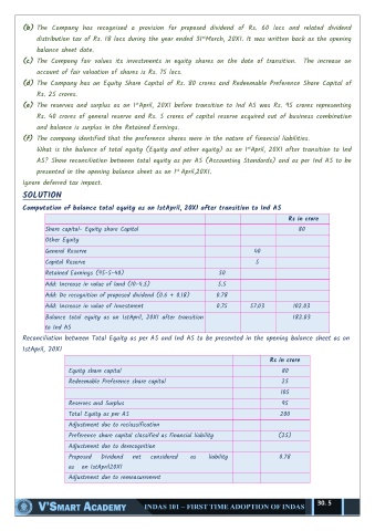 (e) The reserves and surplus as on 1 April, 20X1 before transition to Ind AS was Rs. 95 crores representing