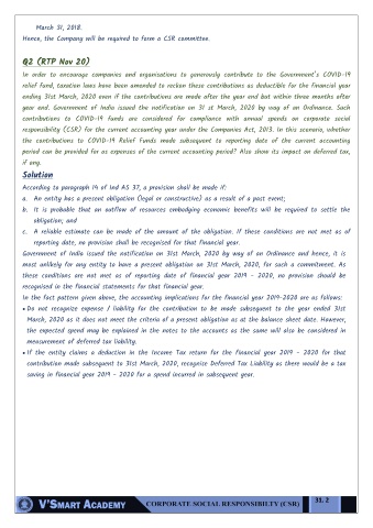 contribution made subsequent to 31st March, 2020, recognise Deferred Tax Liability as there would be a tax