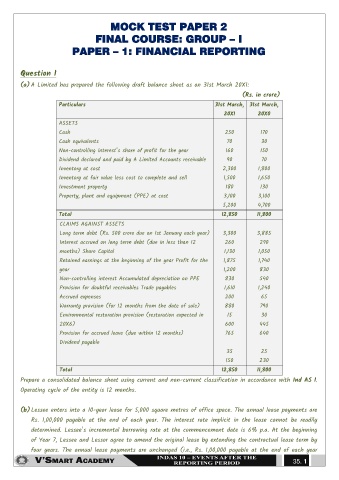 (a) A Limited has prepared the following draft balance sheet as on 31st March 20X1: