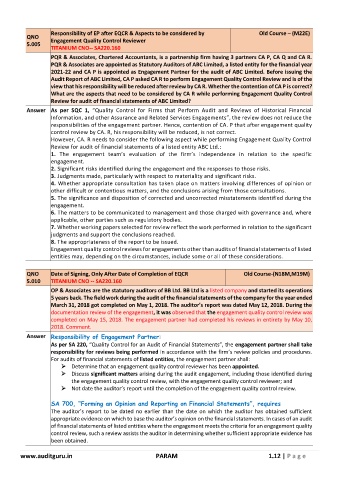 However, CA. R needs to consider the following aspect while performing Engagement Quality Control