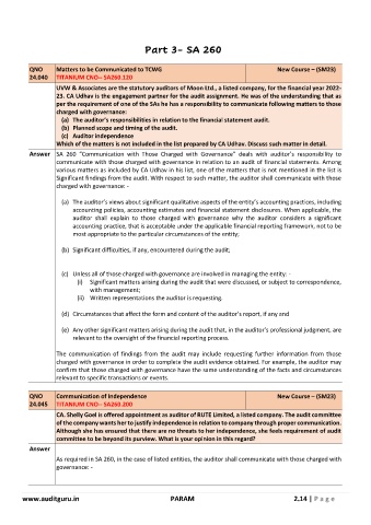 Answer SA 260 “Communication with Those Charged with Governance” deals with auditor’s responsibility to