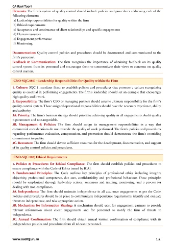 1. Culture: SQC 1 mandates firms to establish policies and procedures that promote a culture recognizing