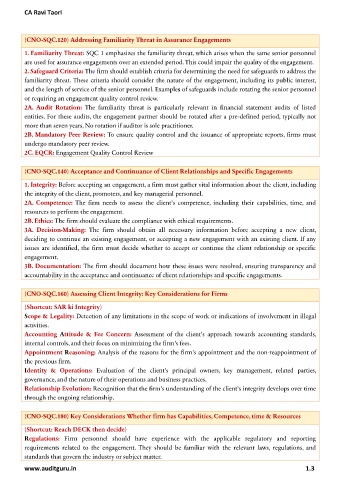 1. Familiarity Threat: SQC 1 emphasizes the familiarity threat, which arises when the same senior personnel