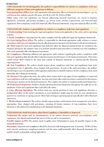 (CNO-SA250.100) SA 250 distinguishes the auditor’s responsibilities in relation to compliance with two