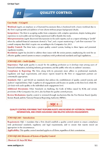 auditors' responsibilities. SQC 1 applies to all engagements and focuses on quality at the firm level, while SA-