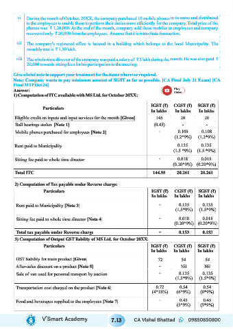 1) Computation of ITC available with MS Ltd. for October 20XX: