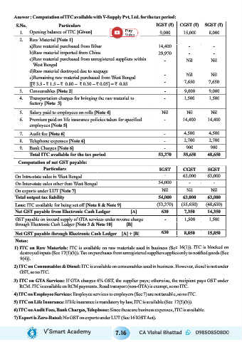 Answer : Computation of ITC available with V-Supply Pvt. Ltd. for the tax period: