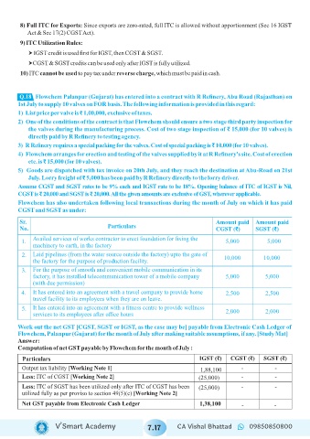 8) Full ITC for Exports: Since exports are zero-rated, full ITC is allowed without apportionment (Sec 16 IGST