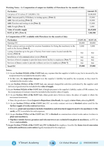 Working Notes : 1) Computation of output tax liability of Flowchem for the month of July: